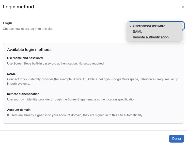 Authentication (SSO, SCIM, SAML, Usernames, Passwords)