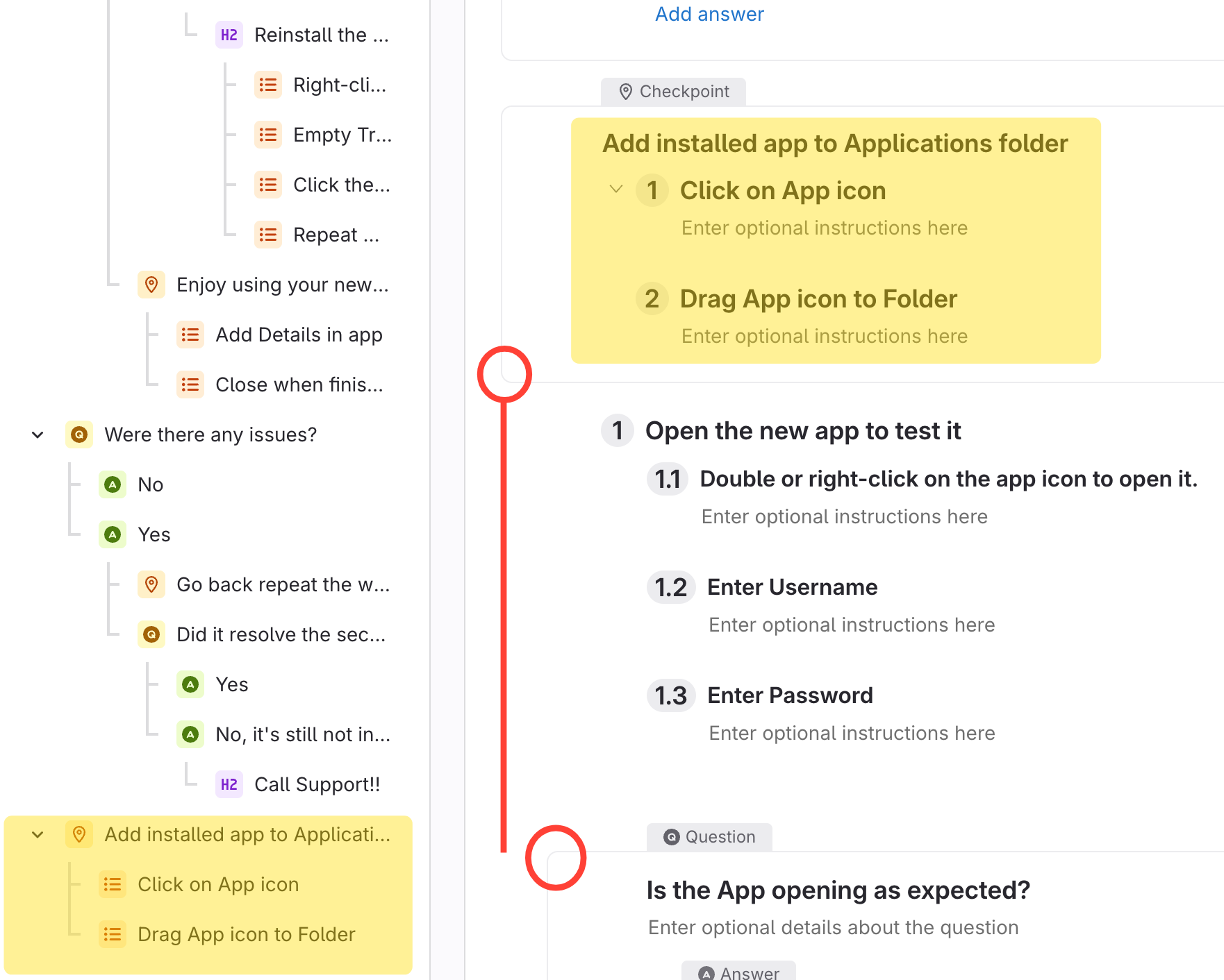 - In the image below, the Checkpoint for adding the app is the last content block on the left panel.