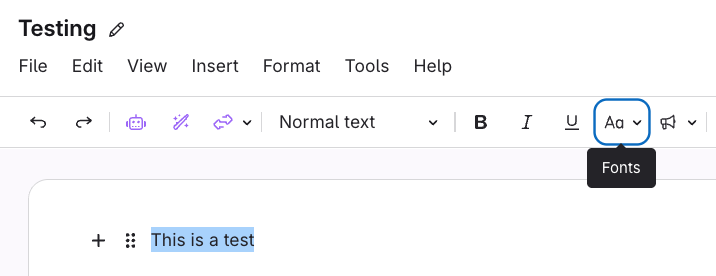 Highlight the text you want to change > Select Fonts