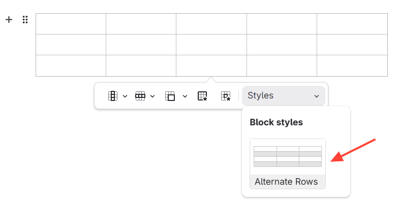 Click a cell in the table you want to have an alternating color in